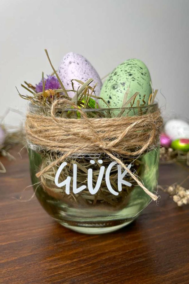 4. Fast geschafft! Jetzt kannst du dein Osterglas nach Belieben füllen.