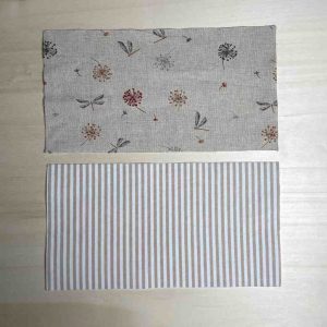 1. Wir benötigen für das Utensilo zwei gleich große Stoffteile: einen Außenstoff und einen Innenstoff. Schneide alle benötigten Stoffteile zu.