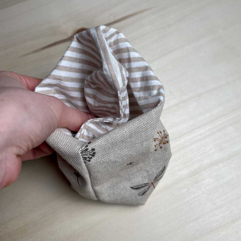8. Stülpe den Innenstoff in das Utensilo hinein, schlage etwas vom Rand um, und fertig ist dein Utensilo!