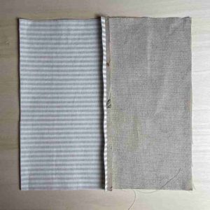 - ➝ 1x Außenstoff: 30 x 16 cm (Fadenlauf entlang der 30 cm Seite)➝ 1x Innenstoff: 30 x 16 cm (Fadenlauf entlang der 30 cm Seite)➝ 1x Vlieseline (H250): 30 x 16 cm